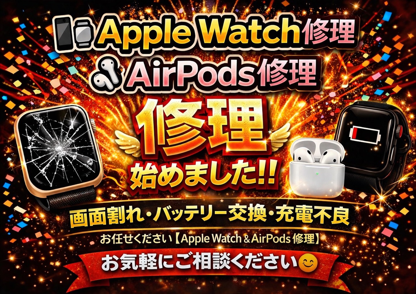 2026年3月30日 / 最終更新日時 : 2026年3月30日 ifc_otagawa 未分類 🕰️Apple Watch⏱️修理・AirPods🎧修理始めました! 🕰️Apple Watch⏱️修理・AirPods🎧修理始めました! この度、Apple WatchとAirPods修理を始めました。 こちら修理 […]